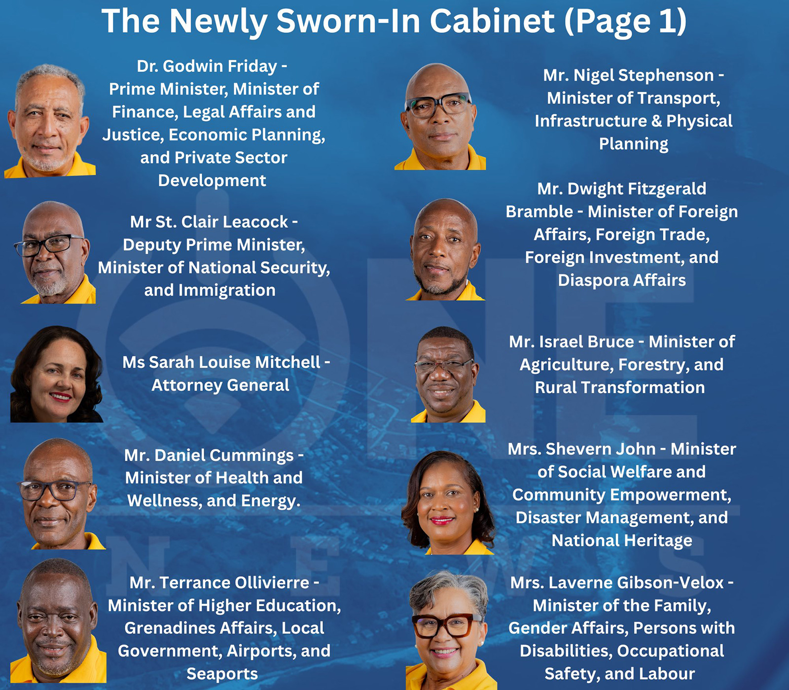 “This new Cabinet represents the strength, diversity, and talent of the Vincentian people. Together, we will lead with integrity, transparency, and a deep sense of duty to improve the lives of all citizens. This is a moment of renewal for our nation.”