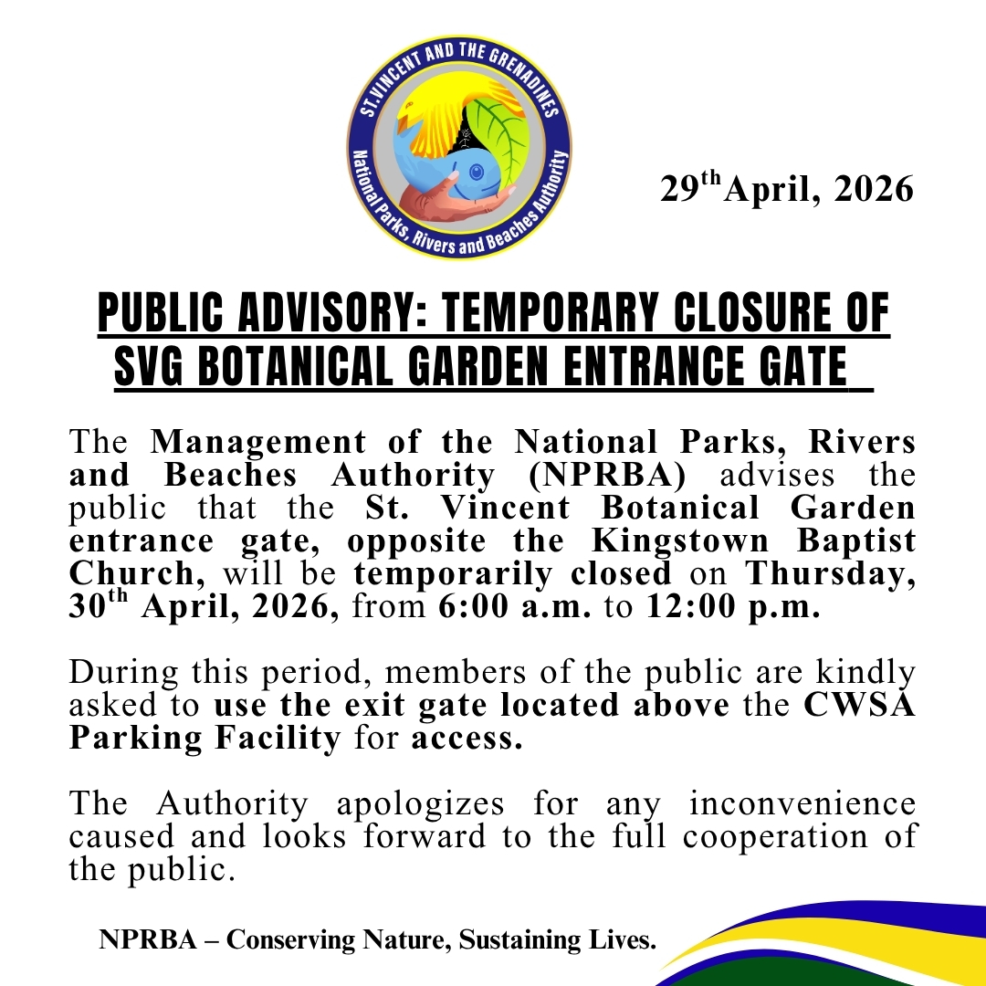 Public Advisory: Temporary Closure Of SVG Botanical Garden Entrance Gate