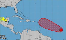 The St. Vincent and the Grenadines Meteorological Services is monitoring an area of low pressure near 11°N 40.5°W; a little more than 1000 miles east of the Windward Islands associated with tropical wave.